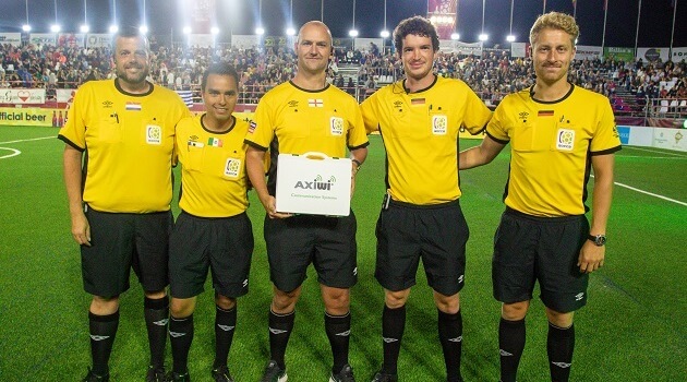 Bobby, who refereed at the Leisure Leagues powered 2019 World Cup in Crete (pictured above at the final with the elite officials), made his comeback to the English Football League this past weekend as he took charge of the top of the table game between Morecambe and Port Vale in League Two.