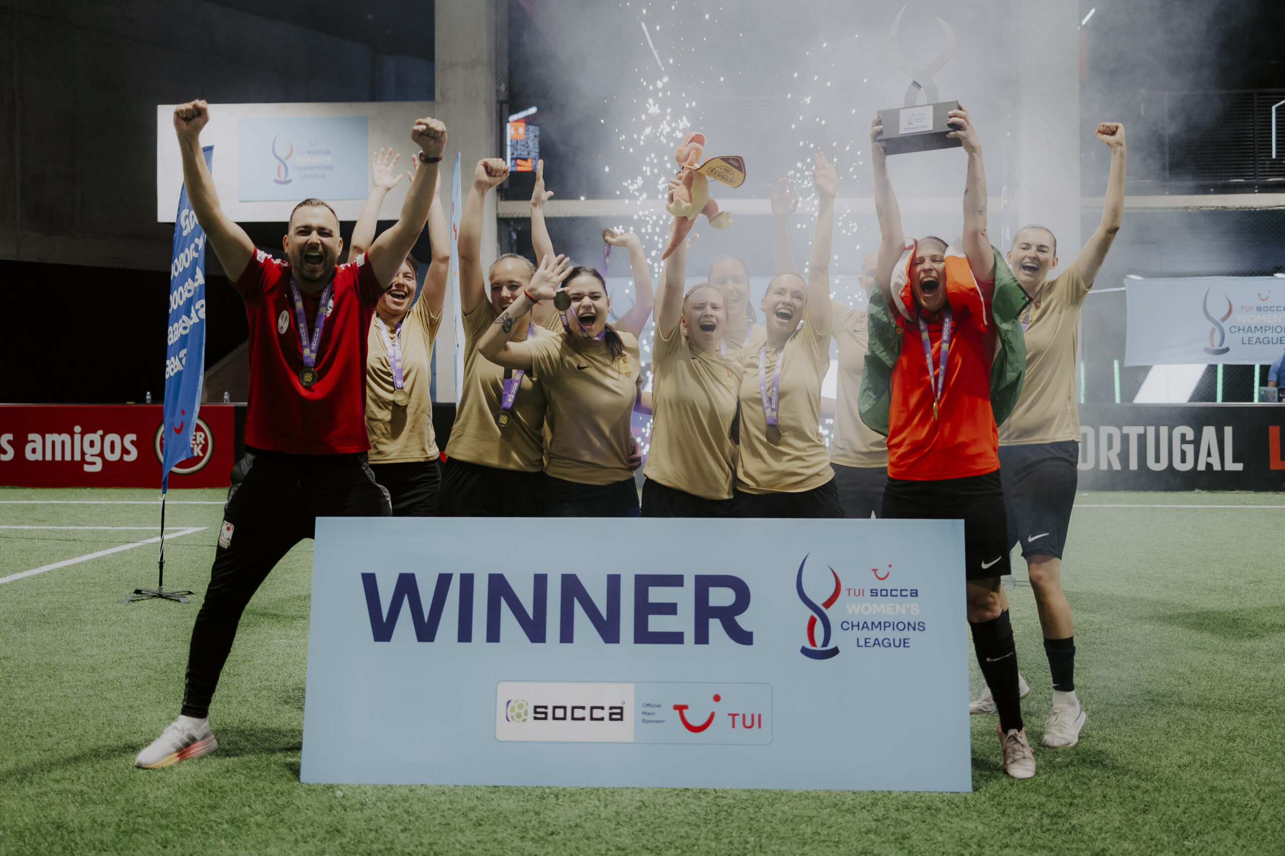 Porto, April 2026 – History was made. Last weekend, the very first TUI SOCCA Women’s Champions League took place at the impressive Arena Liga Portugal in Porto – marking the beginning of a new era in international club sport. Eight teams from across Europe competed and it was a Hungarian side that claimed glory: Környe SE lifted the trophy, defeating UKS Zorza Pegów from Poland in the final.